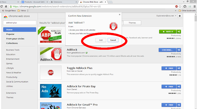 Step 6: If you do not already have Adblock Plus (a Google Chrome free extension) or Flash Control (which controls videos),